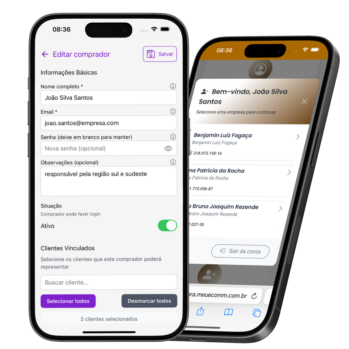 Sim, nosso sistema de controle de acesso garante que cada comprador só veja e faça pedidos para clientes autorizados.